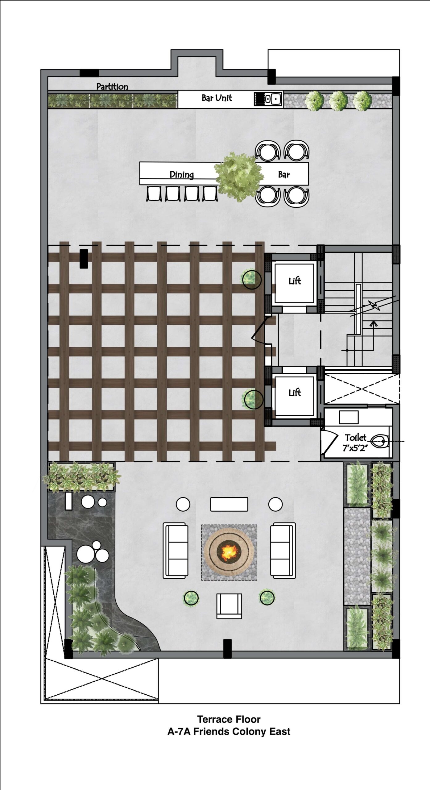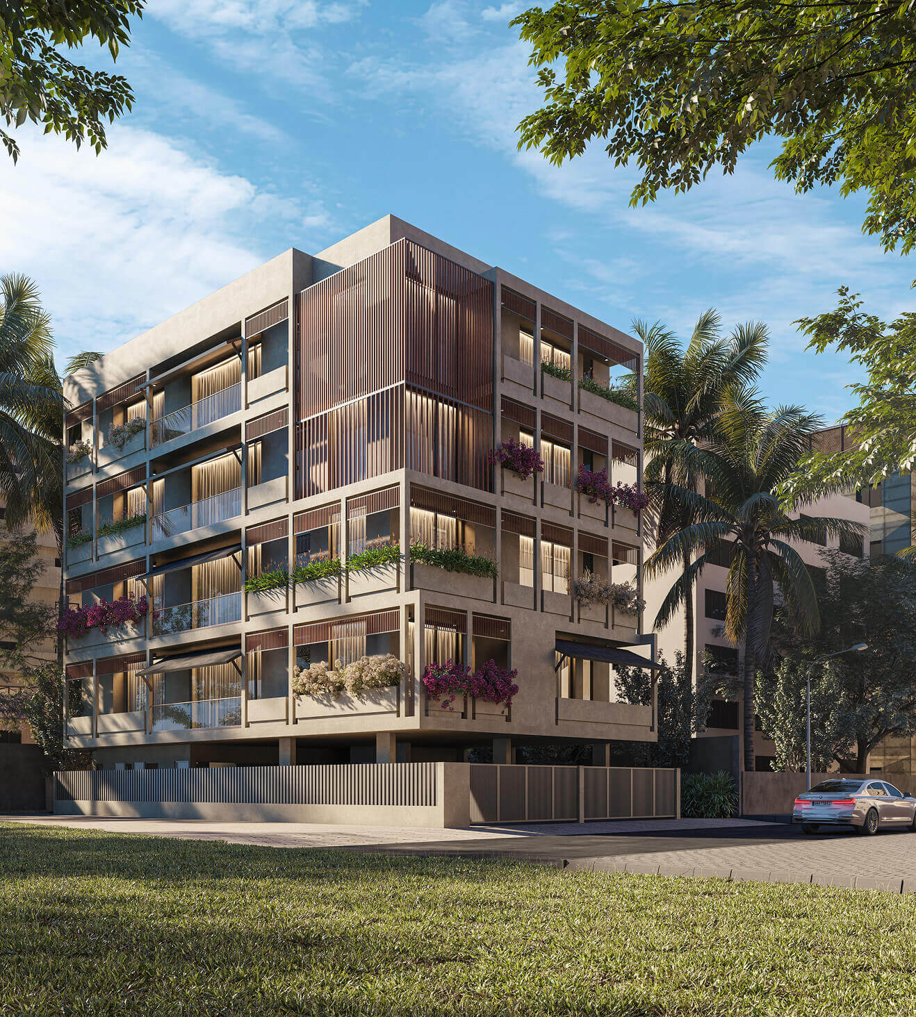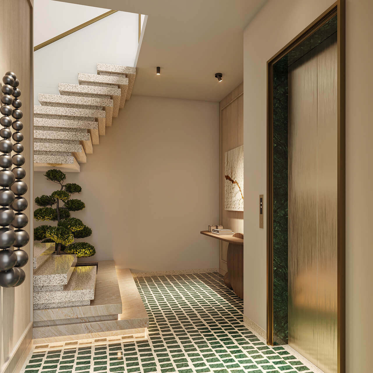 Set at the end of a leafy cul-de-sac in Friends Colony East, A-7A redefines luxury living through a thoughtful interpretation of Tropical Modernism. Inspired by Geoffrey Bawa’s timeless architectural philosophy, each home invites cross-breezes through sloped ceilings and parallel windows, opening onto garden views. A private terrace offers an additional sanctuary; an oasis of calm in the heart of the city.